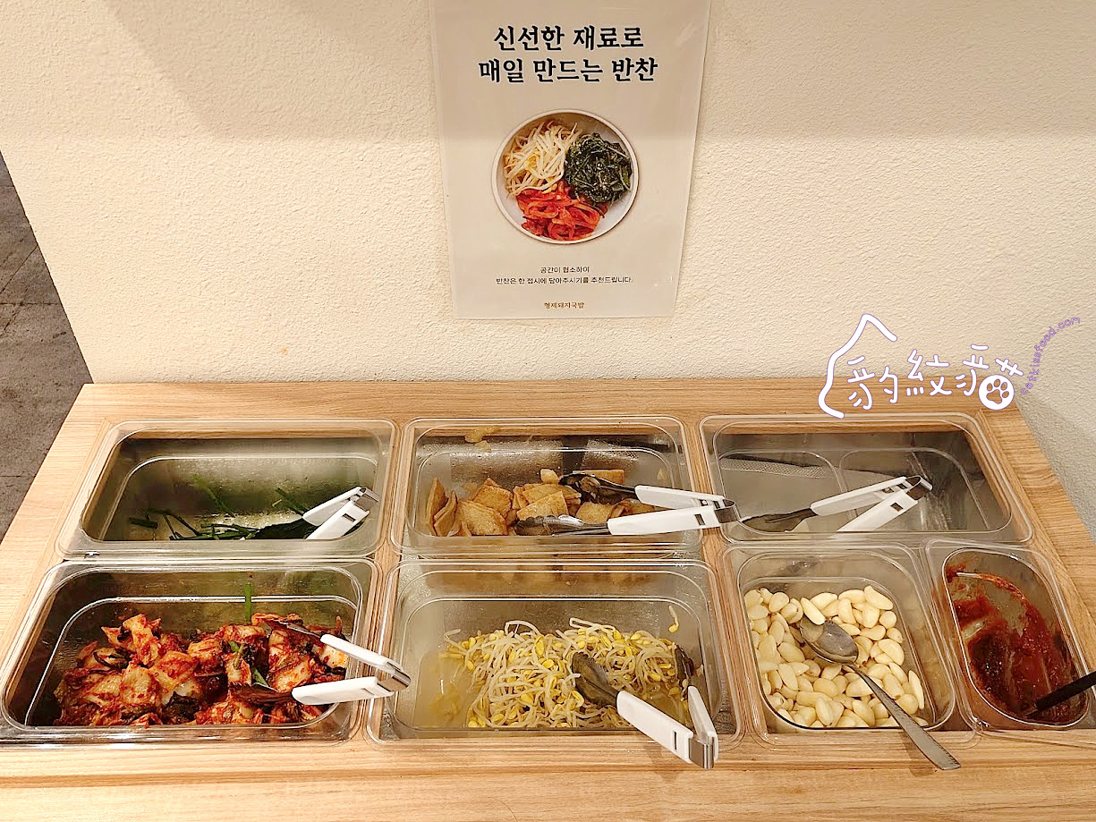 但1953兄弟豬肉湯飯형제돼지국밥是要自己拿,而且用一個盤子把小菜集中盛放,當時胃口不好,所以只拿少量。魚板好吃,小菜滋味清爽。