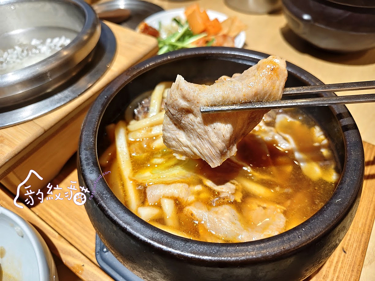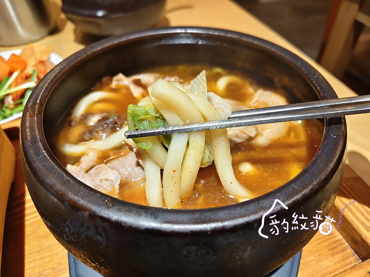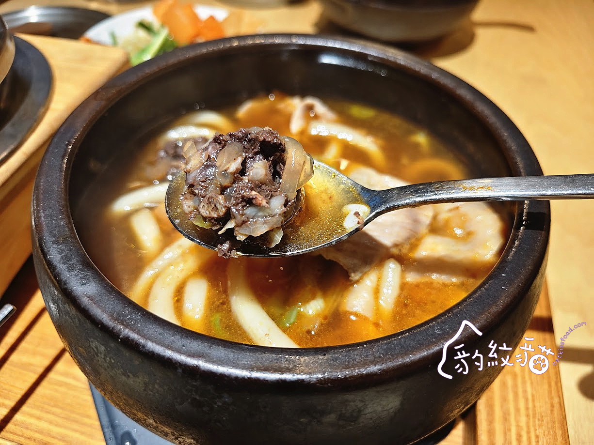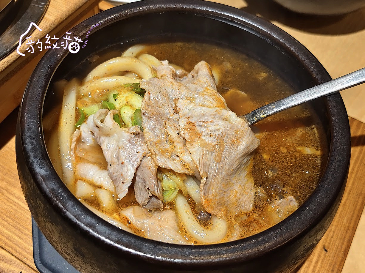 阿貓後來才知道韓國的豬肉湯飯裡,有的也會放烏龍麵,麵控的我先直接跳過釜飯喝了一口湯。